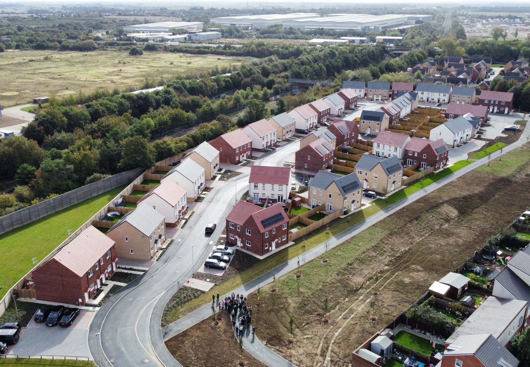 Minster Property Group purchased the land in June 2020 and obtained Reserved Matters Planning consent for 75 dwellings. The project was constructed by Burmor Construction using a highly insulated off-site manufactured timber frame system. The scheme completed in September 2023